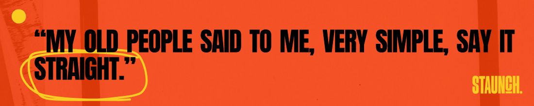 “My old people said to me, very simple, say it straight.”